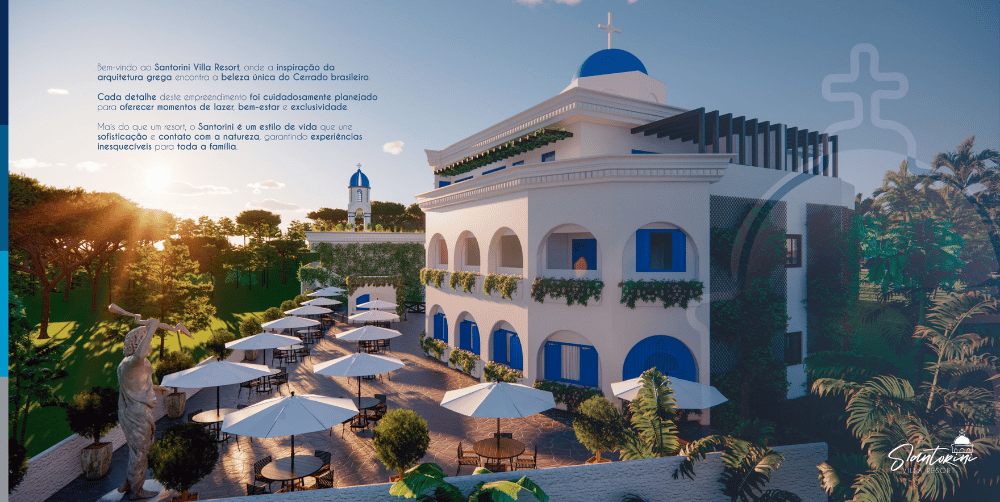 O Santorini Villa Resort traz a sofisticação da arquitetura grega para o coração do Cerrado, oferecendo uma experiência exclusiva de lazer e bem-estar. Adquira sua cota e tenha à disposição um espaço luxuoso e aconchegante sempre que desejar, sem os custos e preocupações de uma propriedade tradicional.